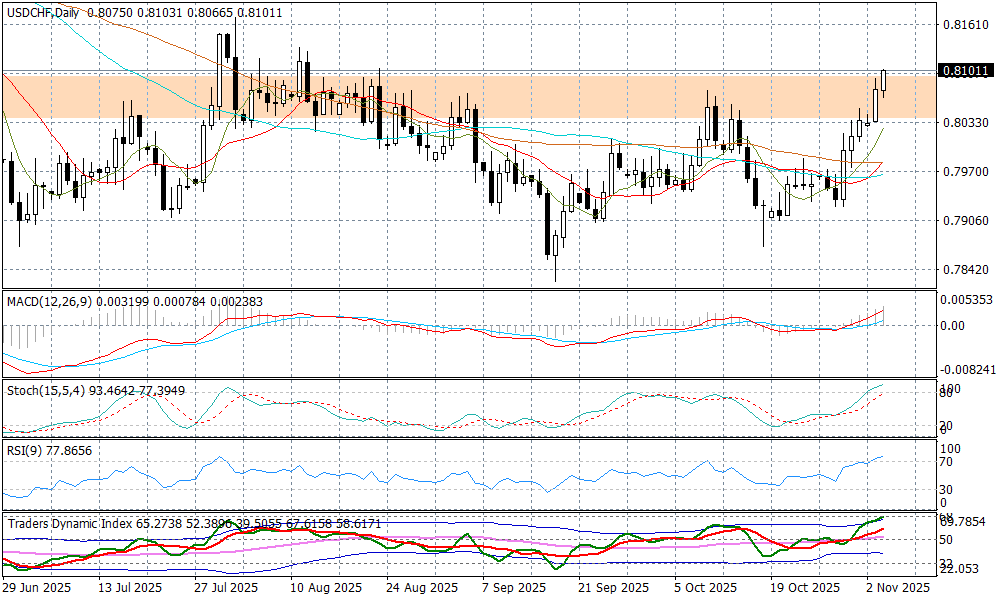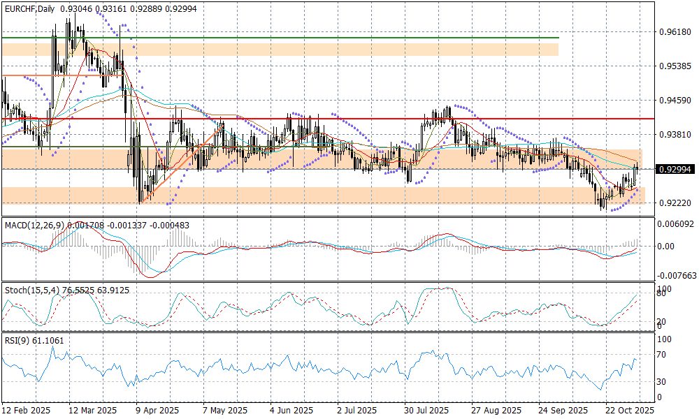 Analiza techniczna podpowiada, że CHF ma pole do średnioterminowego osłabienia. Na EURCHF mamy odbicie od długoterminowego wsparcia, a z kolei USDCHF pokonał ostatnie maksima.