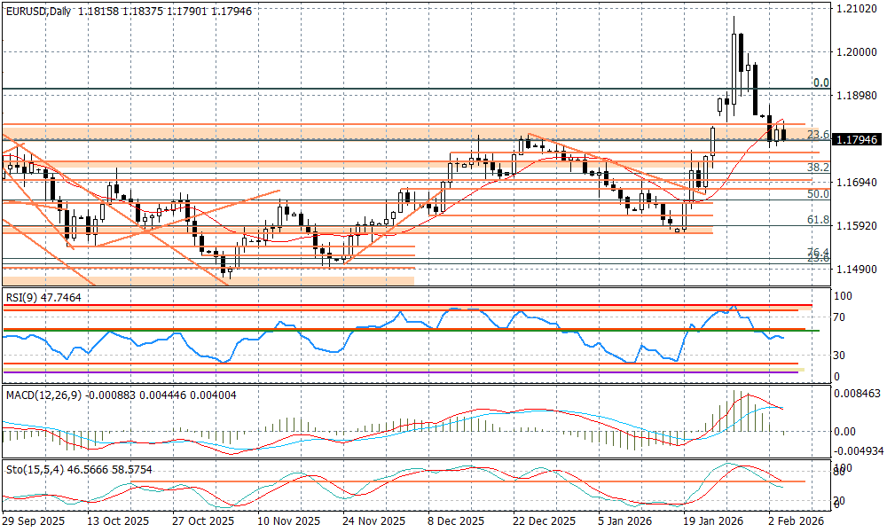 Technicznie EURUSD zszedł poniżej 1,18, ale dynamika ruchu nie jest duża. Ważne wsparcie to rejon 1,1775.