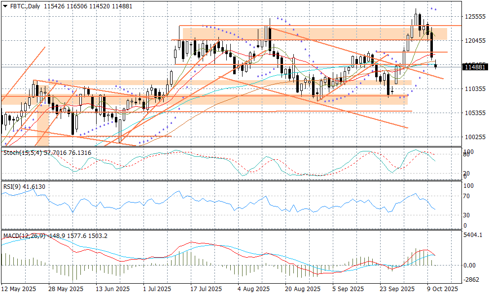 Ucieczka od ryzykownych aktywów była mocniejsza na kryptowalutach, gdyż te są handlowane także w weekend - choć nie poprzez futures. W niedzielę rano notowania BTC zeszły w okolice 110 tys. USD, co jest blisko 10 proc. spadkiem z poziomów notowanych w czwartek wieczorem, czyli zanim rynki weszły w spiralę obaw, co do relacji handlowych pomiędzy USA, a Chinami. Poniedziałek przynosi odreagowanie na ryzykownych aktywach, co daje też podbicie na BTC. Kontrakt futures jest dzisiaj notowany wokół 115 tys. USD. Co dalej?