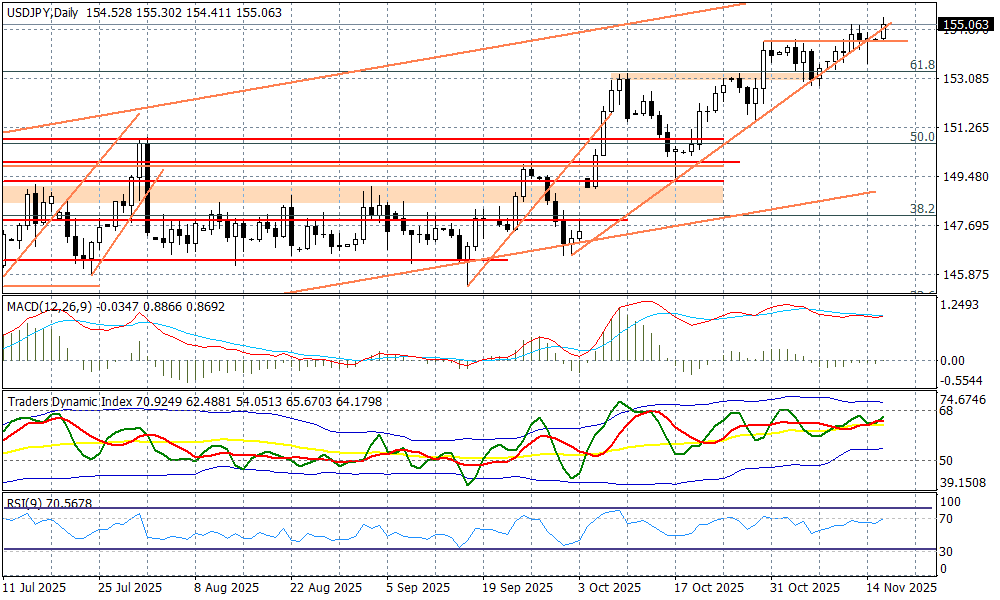 Poniedziałek przynosi lekkie podbicie dolara, podczas kiedy próba kontynuacji odbicia z piątku na Wall Street raczej zakończy się niepowodzeniem, generując średnioterminowe sygnały słabości. Siła USD jest jednak symboliczna, najsłabszy jest JPY, który traci ponad 0,5 proc. na fali oczekiwań związanych z pakietem stymulacyjnym rządu premierki Takaichi. Para USDJPY wybiła się ponad poziom 155,00 notując tym samym nowe maksima w trendzie obserwowanym od kwietnia b.r. To może nasilić komentarze tamtejszych oficjeli "niezadowolonych" z nadmiernych ruchów na rynku FX, ale werbalne interwencje są z reguły skuteczne tylko w krótkim terminie.