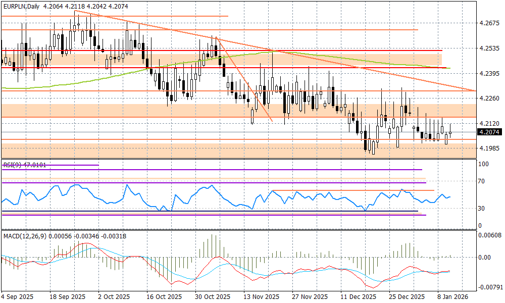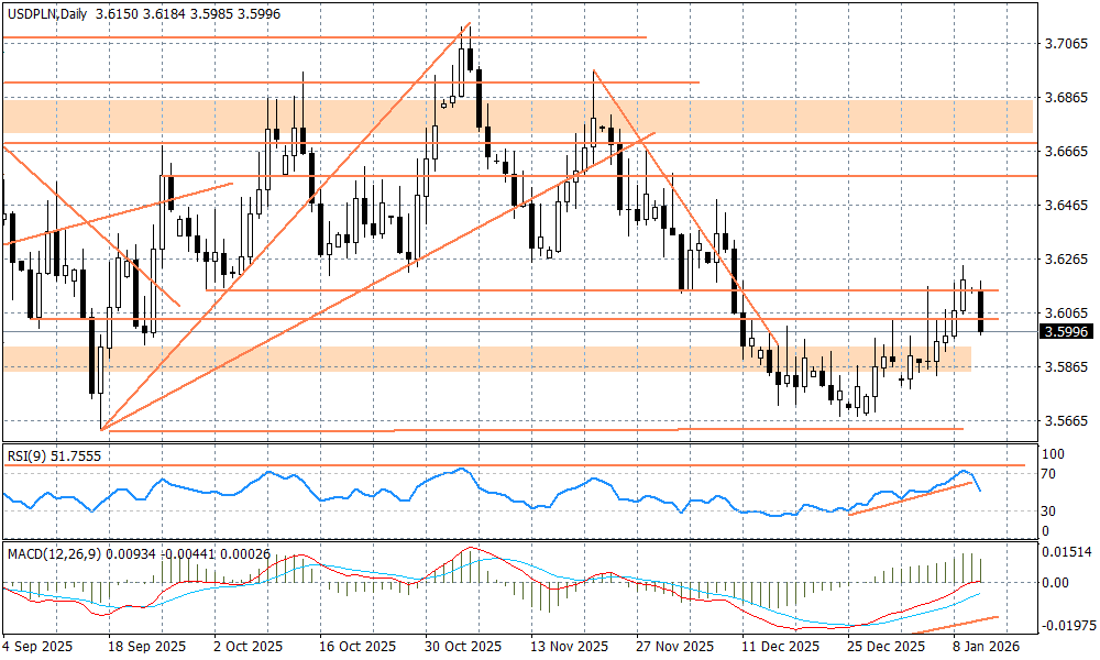 Globalne napięcia będzie generować geopolityka - w tle mamy nie tylko Wenezuelę, ale bardziej Iran i retorykę USA wobec Grenlandii. Jednocześnie w tym tygodniu USA chcą podbić sprawę szybszego uniezależnienia się od Chin w temacie metali ziem rzadkich, naciskając mocniej na swoich partnerów w tej sprawie. Sentyment na Wall Street też jest nieco słabszy. To wszystko powinno prowadzić do powrotu w stronę silniejszego dolara i słabszych walut EM, w tym złotego.