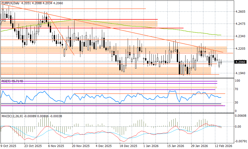 Dla złotego większy wpływ od tego, co dzieje się na rynkach długu ma jednak globalny sentyment i zachowanie się dolara. Amerykańska waluta w ubiegłym tygodniu nieco przystopowała spadki na względem głównych majors, choć perspektywy na jej mocniejsze odreagowanie są niewielkie. Rynki zaczęły mocniej grać czerwcowym terminem cięcia stóp przez FED, po tym jak dane makro zaczęły sprzyjać temu scenariuszowi (mowa o spadku inflacji CPI w styczniu do 2,4 proc. r/r, ale i też "właściwej" interpretacji tylko z pozoru mocnych danych z rynku pracy). Utrzymująca się zmienność nastrojów na Wall Street (niepewny klimat wokół AI i spółek tech) nie pozwoliła jednak mocniej rozegrać tego czynnika, jako "kreatora" sentymentu.