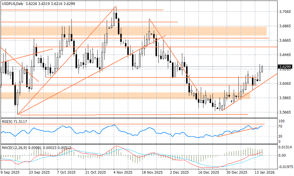 Polska waluta pozostaje nieco słabsza patrząc na perspektywę ostatnich dni - w piątek rano za euro płaci się 4,2150 zł, a dolar oscyluje blisko 3,63 zł. Teoretycznie geopolityczne tylko teoretycznie spadły - w kwestii Iranu media ujawniły, że Trump zmienił zdanie po mocnych naciskach premiera Izraela, co może jednak sugerować, że wątek nie jest zamknięty - zwłaszcza, że w Iranie dalej jest niestabilnie. Więcej spekulacji w ostatnich dniach koncentruje na sobie kwestia Grenlandii, a ostatnia rozmowa przedstawicieli Danii z amerykańskim wiceprezydentem raczej nie należała do nazbyt udanych. To może być "czarny łabędź" dla rynków w najbliższych miesiącach, bo sprawa grenlandzka jest dla wielu tak mało realna, przez co nie jest w zasadzie dyskontowana. Teraz wpływ na złotego ma jednak to, co dzieje się wokół dolara - wczoraj EURUSD zszedł poniżej 1,16 - a także coraz trudniejsze "puzzle" na globalnych rynkach - nadmierna spekulacja na kruszcach, ruchy amerykańskiej administracji wokół sektora półprzewodników, czy wreszcie wisząca nad rynkami kwestia legalności ceł. W kraju wczorajsza konferencja prasowa prezesa Glapińskiego nie zwróciła większej uwagi. Szef NBP w zasadzie potwierdził to, co rynki już wiedzą - oczekiwania na ruch o 50 punktów baz. na stopach w tym roku. Przekaz nie był więc jakoś "gołębi" i obserwowane lekkie osłabienie złotego nie ma z tym związku.