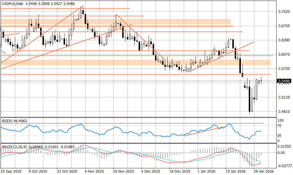 Patrząc na zmienność jaką mamy na metalach szlachetnych, kryptowalutach, czy niektórych indeksach giełdowych, to sytuacja na złotym nadal przypomina "sielankę". W poniedziałek rano zmiany nie są duże - USDPLN oscyluje nieco poniżej 3,55 zł po wzrostach z ostatnich dni, podczas kiedy EURPLN jest notowany poniżej 4,21 zł. Zwyżki dolara na globalnych rynkach wyhamowały, a rynek zdaje się, że "przetrawił" już piątkową decyzję Donalda Trumpa o nominacji Kevina Warsha na nowego szefa FED. Inwestorzy przyjęli tą kandydaturę z pewną ulgą (do FED trafił specjalista w swoim fachu, a nie polityk), ale i też z obawami (Warsh ma "jastrzębie" poglądy zwłaszcza, co do kwestii bilansu FED, który uważa za nazbyt rozdmuchany). Przed nami jednak formalności i przesłuchania nowego kandydata w Kongresie, które najpewniej dadzą znacznie więcej informacji, ale i też oczekiwanie - kadencja Jerome Powella potrwa jeszcze trzy miesiące.
