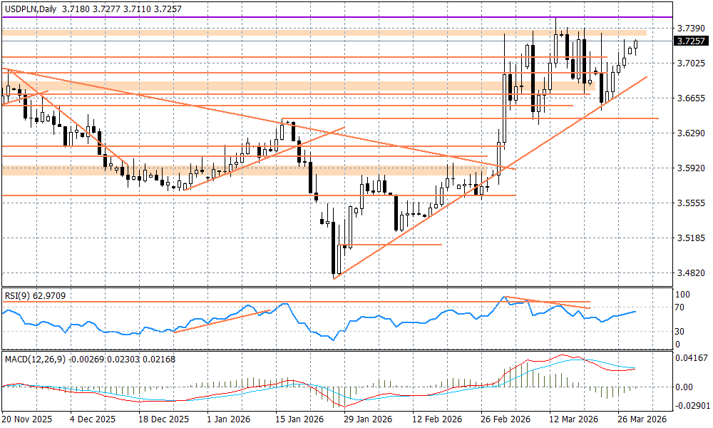 Efekt? Na rynkach utrzymuje się risk-off, co nadal podbija dolara względem głównych walut (wyjątkiem jest dzisiaj jen, który zareagował na werbalne interwencje tamtejszych oficjeli, oraz sygnały gotowości do podwyżek stóp przez Bank Japonii). W kraju przekłada się to na dalsze osłabienie złotego - USDPLN zbliża się do 3,73, a EURPLN oscyluje wokół 4,2850. Polska waluta nie jest jednak szczególnie słaba - do marcowych minimów zostało ponad 2 grosze. Czy dojdzie do ich wybicia? Tak, jeżeli sytuacja w Iranie będzie zmierzać w stronę dalszej eskalacji. Warto wziąć pod uwagę, że okres wielkanocny tradycyjnie wiąże się z niską płynnością, a okolice 6-7 kwietnia mogą okazać się krytyczne dla scenariusza wokół Iranu, co może prowokować inwestorów do "wyprzedzającej reakcji".