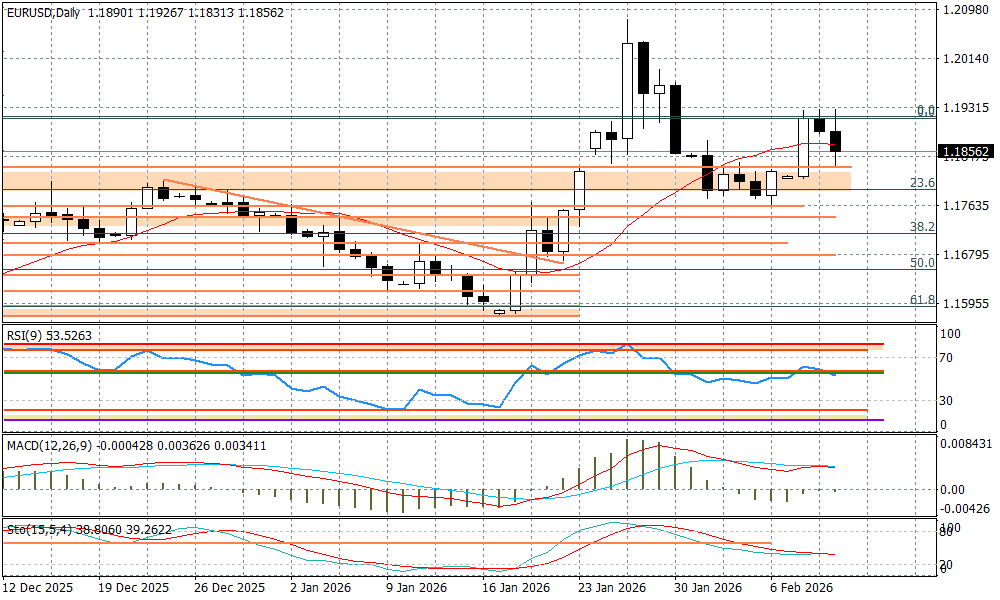 Dolar odbija dzisiaj na szerokim rynku - EURUSD cofnął się do wsparcia przy 1,1830, ale próbuje odbijać. Dzisiejsze dane oddalają perspektywę szybkiego osiągnięcia okolic 1,20, ale nie przekreślają takiego scenariusza w szerszym horyzoncie.