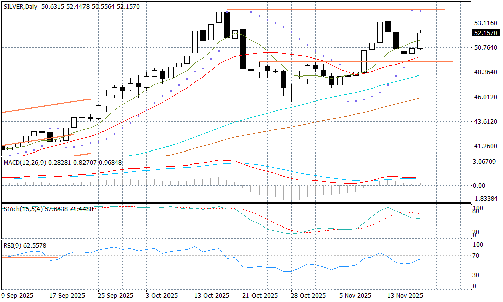 Dzisiaj futures na złoto odbijają mocniej, co może wskazywać na rozpoczęcie nowej fali wzrostowej - jeżeli inwestorzy "kupią" wątki w postaci wyboru następcy Powella w FED, czy też oczekiwanie na wyrok w sprawie ceł Trumpa. To przekłada się na kolejne podbicie na srebrze i ten kruszec ponownie rośnie szybciej niż złoto. Czy to oznacza, że szanse na nowe ATH na futures na srebrze (>54,50 USD) są bliżej, niż dalej? Wiele może zależeć od tego, jak będą reagować rynki akcji akcji po dzisiejszych danych z NVIDIA (wieczorem), bo tutaj będzie "ustawiany" sentyment wokół ryzykownych aktywów na kolejne dni, a może nawet dłużej. Szybkie i gwałtowne spadki indeksów na Wall Street (gdyby się pojawiły) mogą negatywnie zaważyć na postrzeganiu ... złota i srebra, gdzie ostatnio mamy więcej spekulantów, niż zazwyczaj.