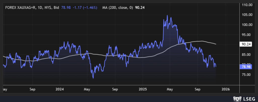 Wykres GOLD/SILVER RATIO, źródło: LSEG Workspace
