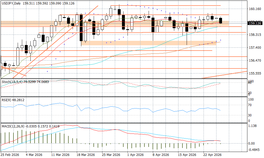 Technicznie pozostajemy w układzie trendu bocznego - wsparcia przy 158,50 mogą zostać sprawdzone, gdyby w przekazie BOJ pojawiły się jakieś "jastrzębie" akcenty, a raczej tak będzie, gdyż decydenci nie chcą też dopuścić do nadmiernego osłabienia się JPY. Pytanie jednak, czy rynek uwierzy w to, że BOJ może realnie coś zrobić przed lipcem, oraz na ile USD zyska w sytuacji pogorszenia się sentymentu wokół Iranu (jest mało realne, aby USA mogły negocjować w formule zaproponowanej przez Teheran), czy też na fali ewentualnej korekty na Wall Street w końcu miesiąca. Opór na USDJPY to okolice 160,00.