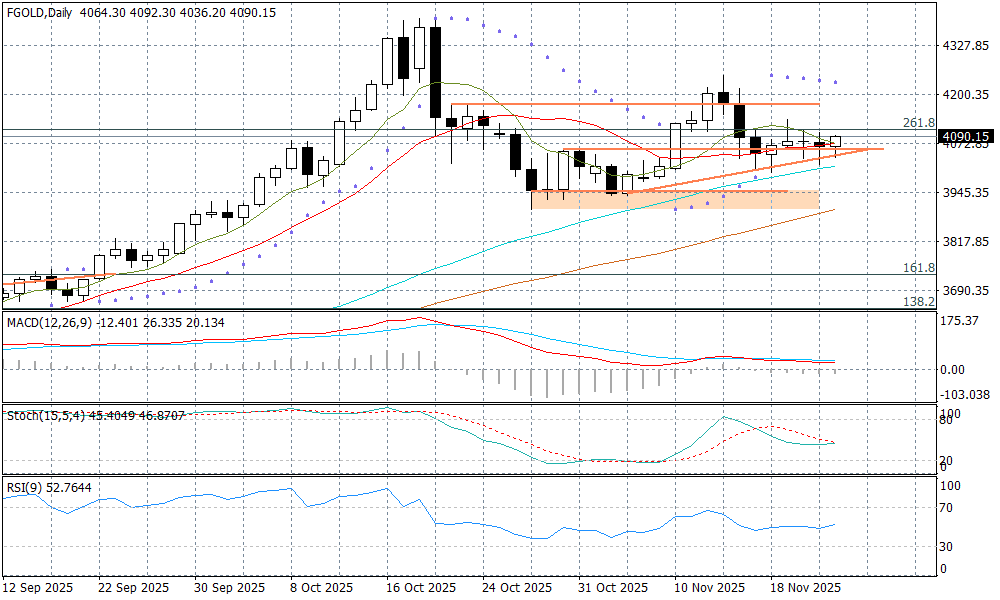 Kontrakt na złoto pozostaje stabilny w ostatnich dniach niezależnie od wahań dolara, czy też emocji na giełdach, gdzie obserwujemy podwyższoną zmienność. Wzrost oczekiwań na grudniową obniżkę stóp (posiedzenie FED jest 10 grudnia) może dawać argumenty za podbiciem notowań kruszcu, choć rynek będzie zerkał na dolara. A tu mamy sygnały jego lekkiego osłabienia.