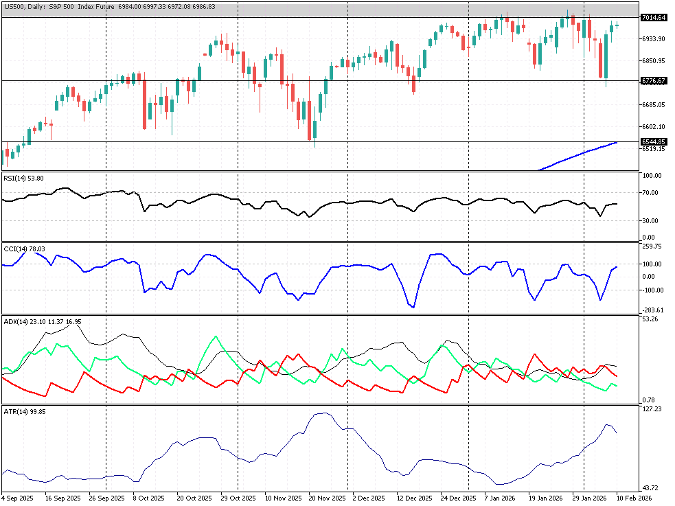 Rynek kasowy w USA przygotowuje się do otwarcia w atmosferze wyczekiwania, przy porannych ruchach kontraktów oscylujących wokół płaskiej linii (od -0,03% na DJIA do okolic +0,15% na S&P 500). Inwestorzy trawią optymizm płynący z sektora technologicznego, gdzie nadzieje na dalszy boom AI podsyciły informacje o powrocie ChatGPT do wzrostów oraz gigantyczny kontrakt Oracle z OpenAI. Umowa przewiduje, że OpenAI będzie kupować moce obliczeniowe od Oracle przez około pięć lat, począwszy od 2027 roku. Technicznie US500 balansuje tuż pod psychologicznym oporem 7000 pkt. (na wykresie okolice 7014 pkt.), a RSI(14) na poziomie 54 pkt. sugeruje, że rynek ma jeszcze paliwo do ataku na szczyty, o ile sentymentu nie popsują nadchodzące dane o inflacji i rynku pracy.
