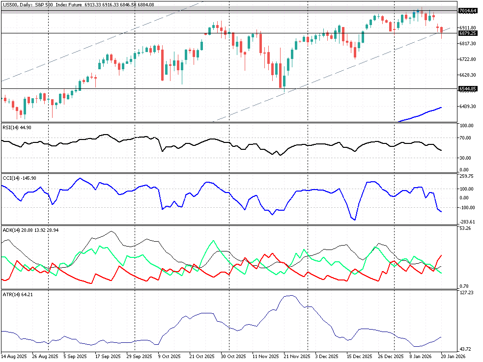 Pierwsze wskazania dla Wall Street są dziś wyraźnie risk-off: Amerykanie po długim weekendzie zastaną spadki na głównych futures, gdyż rynki globalne dyskontują eskalację napięć handlowych na osi USA–Europa w tle sporu o Grenlandię. Według danych z rynku terminowego: Dow -1,4%, S&P 500 -1,5%, Nasdaq 100 -1,8% – co podbija wrażliwość na nagłówki i sprzyja „szarpanej” zmienności na otwarciu. Europa też idzie w tryb obronny (DAX jest pod presją, zniżkując o 1,2%, ucieczka w złoto/CHF, narracja „Sell America”), a dodatkowym ładunkiem ryzyka jest oczekiwanie na możliwe rozstrzygnięcia dot. legalności ceł w USA. W takim otoczeniu to nie „trend” rządzi taśmą, tylko nagłówki a także poziomy techniczne, szczególnie widoczne na US500, gdzie momentum hossy wyraźnie zgasło. Dla głównej pochodnej SPX mamy zainicjowany układ słabości wg DMI / ADX a twardy opór przebiega przez 7014 pkt. Z kolei na pochodnej Russell’a 2000 byki mogą mieć problemy przy luce bessy 2667 – 2701 pkt. Lokalne wsparcia 2637 – 2630 punktów są pod presją a istotna strefa popytowa przebiega przy 2597 – 2545 pkt. Generalnie teraz eskalacja (lub deeskalacja) w temacie ceł i możliwych działań odwetowych UE („trade bazooka” w tle) gra pierwsze skrzypce – rynek jest na to wyjątkowo czuły. Wątek Sądu Najwyższego dot. legalności ceł oraz narracja Davos/spotkań politycznych stanowią typowe katalizatory „nagłówkowych świec” na futures. Pamiętajmy również, iż sezon wyników kwartalnych w USA trwa w najlepsze: dziś rynek będzie też patrzył na duże raporty (m.in. Netflix po sesji), ale w krótkim terminie i tak może to przykryć geopolityka oraz sprawy taryfowe. Warto na tak „nabodźcowanym” rynku zachować szczególną ostrożność, gdyż rośnie nam zmienność a przez to i handel staje się bardziej ryzykowny.