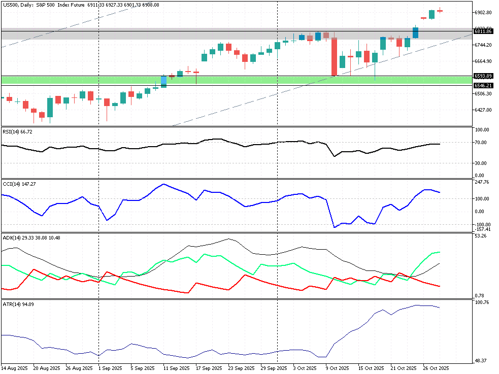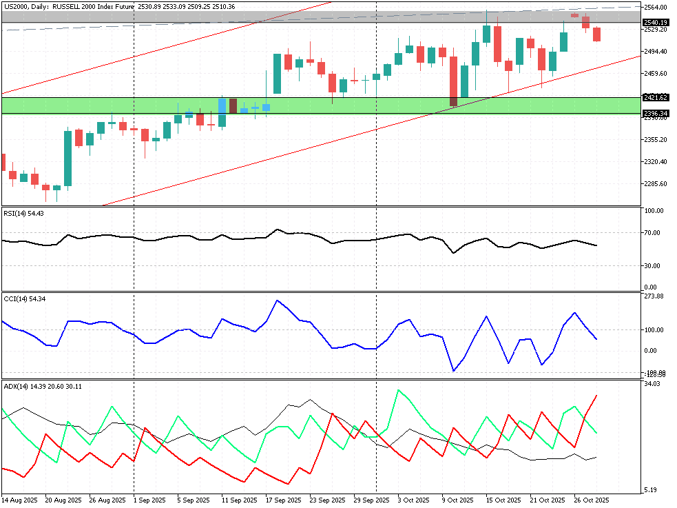 Główne nowojorskie indeksy DJIA, S&P500 oraz NASDAQ Composite notują tuż po otwarciu w USA odpowiednio +0,44%, +0,01% oraz +0,32%. Do tego szeroki Russell 2000 maleje o 0,76%, potwierdzając ostatnio prezentowaną, relatywną słabość, co wyraźnie widać na zestawieniu US2000 / US500. Mamy zatem otwarcie na Wall Street, które zapowiadały przez większość europejskiej wymiany zagraniczne futures. Rynek akcji z USA rozpoczyna transakcyjny dzień od stabilizacyjnych, pro-korekcyjnych wskazań, ale sytuacja techniczna nadal posila obóz byków. Przy czym pamiętajmy, że gracze pozycjonują się przed decyzją FOMC i wynikami amerykańskich Big Techów. Technicznie patrząc futures na SPX podlegają umiarkowanie wzrostowej zależności wg szybkiego nastawienia DMI / ADX. Ważne wsparcie wypada przy 6811 pkt. a przecie tej bariery powinno prowadzić do zwiększenia ryzyka na wielu prestiżowych spółkach z USA. Z kolei pochodna dla szerokiego rynku akcji tj. US2000 słabnie w stronę wsparcia 2500 – 2490 pkt. a jego potwierdzenie powinno nieco ożywić obóz popytu. Niemniej dla futures Russell’a mamy wstępną sprzedaż wg DMI / ADX, co nie jest jakimś stanem przesilenia podażowego wg RSI / CCI, stąd gracze powinni raczej oceniać tą kondycję za zrównoważoną z potencjałem do wypracowania formacji obronnej.
