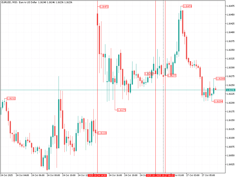 Sesja Azjatycka: W trakcie azjatyckiego obrotu obserwujemy słabą korektę typu pull back w zakresie 1,16474 – 1,16204 USD. Eurodolar traci kosmetyczne 0,06% na starcie nowego tygodnia. Japoński jen traci 0,22% na tle USD, kierując się w stronę ważnego ograniczenia 153,25 JPY, gdyż obawy dotyczące kwestii fiskalnych przyćmiewają spekulacje BoJ dot. podwyżek stóp procentowych.