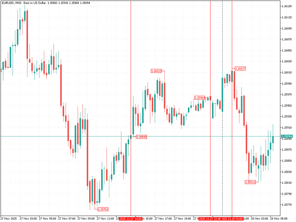 Sesja Azjatycka: Podczas handlu w Azji nadal obserwujemy stabilizację na USD Index (+0,01%), przy kosmetycznym zniżkowaniu USD/JPY (-0,04%) do okolic 156,221 JPY, gdyż obawy fiskalne równoważą odczyt CPI w Tokio. Główna para walutowa osłabia się o 0,06%, oscylując w wąskim zakresie 1,16017 – 1,15811 $.