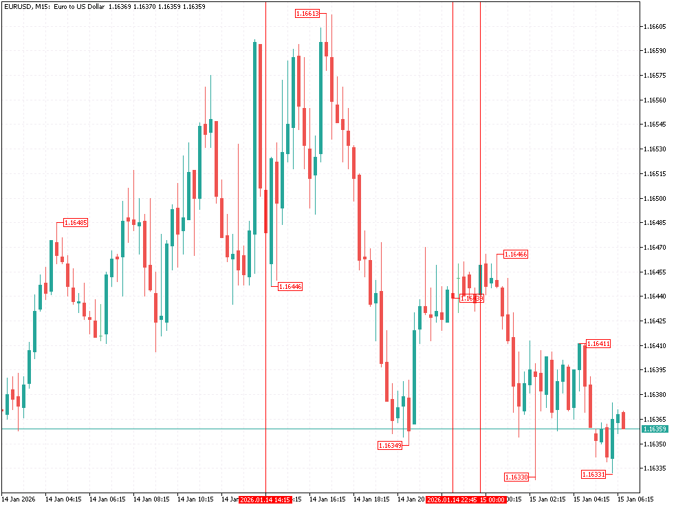 Sesja Azjatycka: Podczas handlu w Azji główna para walutowa kreuje lekki ruch zniżkujący do ok. 1,16330 USD. Eurodolar osłabia się z uwagi na utrwalanie oczekiwań, że Fed będzie dłużej utrzymywać stopy procentowe na obecnym poziomie. Rynek wycenia pakiet mocnych danych z USA: sprzedaż detaliczna +0,6% m/m do 735,9 mld USD (powyżej oczekiwań po słabszym październiku) oraz PPI, który potwierdza uporczywość presji cenowej.