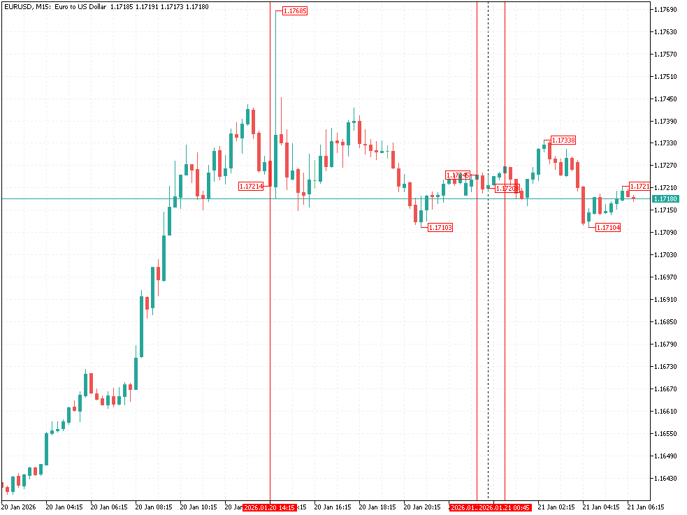 Sesja Amerykańska: W trakcie sesji w USA eurodolar najpierw wzrósł do okolic ważnej strefy podażowej 1,17447 – 1, 17685 USD. Następnie doszło do cofnięcia w okolice 1,17103 – 1,17245 USD. W ujęciu koszykowym amerykański dolar stracił podczas ostatniej sesji 0,39% w związku z groźbami prezydenta USA Trumpa o nałożeniu ceł na kraje europejskie w kontekście sporu o Grenlandię.