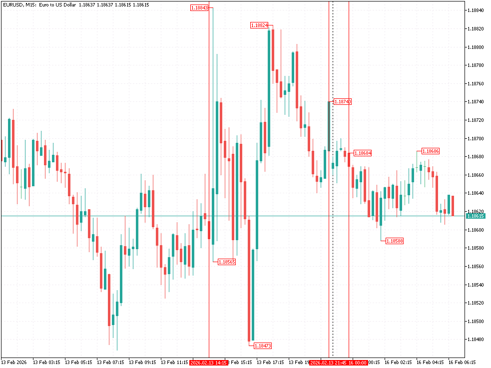 Sesja Azjatycka: Podczas obrotu w Azji obserwujemy uspokojenie nastrojów i handel w wąskim przedziale w okolicach 1,1861 $. Start tygodnia wypada stosunkowo “cicho”, gdyż w USA mamy święto federalne Urodziny Waszyngtona, natomiast Chiny świętują Nowy Rok, co ogranicza płynność. EUR/USD trzyma się okolic 1,1860 $, niemniej po ostatnim odczycie CPI dolar USD ma teraz mniejsze wsparcie.