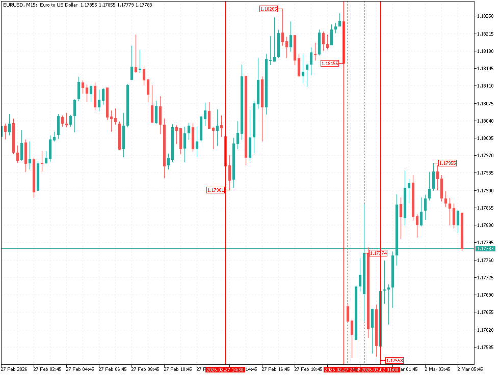 Sesja Azjatycka: Sytuacja uległa gwałtownej zmianie, gdyż sesja azjatycka otworzyła się w cieniu eskalacji konfliktu na linii USA–Iran oraz ataków na tankowce w pobliżu Cieśniny Ormuz. Wybuch wojny w weekend wywołał ucieczkę inwestorów do bezpiecznych przystani, spychając parę EUR/USD w rejon miesięcznych minimów przy 1,1755 $. Rosnące ceny ropy naftowej początkowo o ok. 10% dodatkowo obciążyły euro, które w trakcie porannego handlu traciło 0,5%, oscylując wokół poziomu 1,1758 $. Obecnie rynek próbuje odrabiać straty, jednak nastroje pozostają pod presją geopolityki oraz oczekiwania na popołudniowe dane ISM / PMI z USA. Technicznie kluczowym oporem pozostaje bariera 1,1800 $, której odzyskanie będzie wymagało deeskalacji napięć na Bliskim Wschodzie.