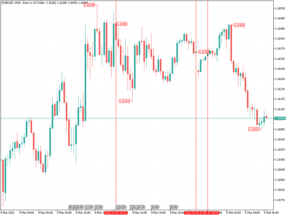 Sesja Azjatycka: Podczas handlu azjatyckiego eurodolar zanotował niewielki spadek, schodząc poniżej poziomu 1,1616 $ i stabilizując się w granicach 1,1646 – 1,1605 $. Dolar amerykański odzyskał inicjatywę jako "bezpieczna przystań" (safe haven) w odpowiedzi na eskalację konfliktu na Bliskim Wschodzie i doniesienia o nowych atakach na infrastrukturę w Iranie. Wspólna waluta pozostaje pod presją, mimo jastrzębich sygnałów z rynków pieniężnych, które wyceniają już blisko 40% szans na podwyżkę stóp procentowych przez EBC w tym roku w obliczu rosnących ryzyk inflacyjnych na rynku energii.