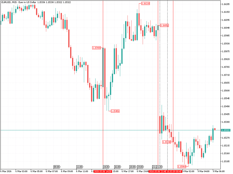 Sesja Azjatycka: Start nowego tygodnia w Azji przebiegał pod dyktando mocniejszego dolara i pogorszenia nastrojów, co przełożyło się na kontynuację zniżek EUR/USD do nowych minimów. Główna para walutowa zeszła do okolic 1,15068 $, po czym pojawiło się techniczne odreagowanie i podbicie w stronę 1,15322 $. Eskalacja napięć na Bliskim Wschodzie podtrzymuje przepływy do dolara, a jednocześnie skok cen ropy (ryzyko szoku inflacyjnego i presja na rentowności USA) oraz wrażliwość Europy na koszty energii dodatkowo obciążają wspólną walutę.