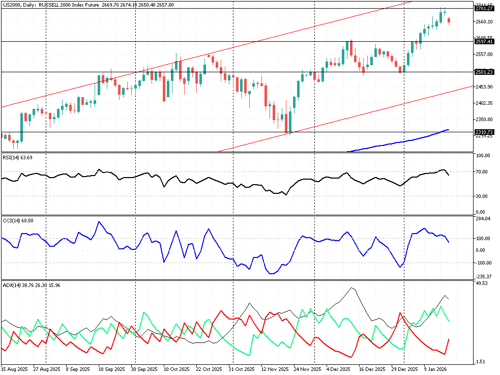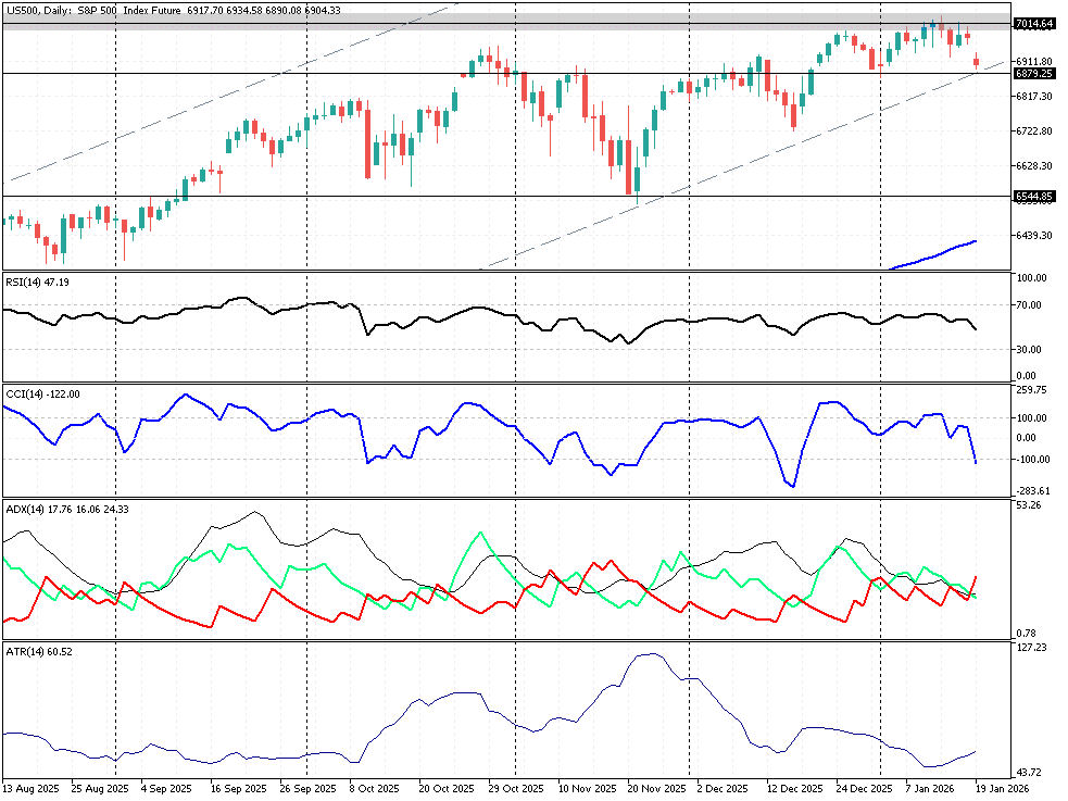 Amerykanie świętują Dzień Martina Luthera Kinga i Wall St pozostaje dzisiaj zamknięta. Niemniej rynki europejskie i azjatyckie pozostają otwarte, a uwaga inwestorów skupia się na napięciach geopolitycznych, co wyceniają nowojorskie futures. Euroland w ślad azjatyckich giełd odnotowuje spadki w związku z rosnącymi obawami o eskalację konfliktu handlowego. Prezydent USA, Donald Trump, zagroził nałożeniem ceł na osiem krajów europejskich (w tym Niemcy i Wielką Brytanię), jeśli te nie zgodzą się na amerykańską propozycję dotyczącą Grenlandii. Groźba 10% taryf, które miałyby obowiązywać od 1 lutego, wywołała wyprzedaż akcji i rajd w kierunku bezpiecznych aktywów, takich jak złoto i jen japoński. Brak sesji w USA oznacza niższą ogólną płynność na rynkach, co może potęgować ruchy cenowe na rynkach europejskich przed zamknięciem, szczególnie w obliczu tak istotnych informacji geopolitycznych. Wzrost cen złota (+1,9% d/d) wskazuje na wysoki poziom awersji do ryzyka (risk-off). Technicznie patrząc futures SPX są tuż powyżej TL 6879 punktów. Nadal także aktualne są ramy konsolidacji 7014 - 6870 pkt. Z kolei pochodne szerokiego Russell 2000 zmierzają w ujęciu intra w stronę wsparcia 2600 – 2597 pkt. a jego nadbicie wiązałoby się ze zwiększoną wahliwością szerokiej Wall St w kolejnych dniach (przynajmniej na wtorkowym otwarciu). Zauważmy, że ostatnio US2000 wybiły się górą z konsolidacji 2597 – 2501 pkt. po wcześniejszym falowaniu na styl hossy. Dzisiejszy pull back jest swego rodzaju próbą sił i wstępem do szerszego retestu tego wybicia. Przy czym byki podchodzą ostrożnościowo do pierwszych komunikatów Trumpa. Tym samym w mocy pozostaje ważny opór 2701 pkt. Widać, że jutrzejsza sesja w USA może stanowić pewne zaskoczenie dla graczy z Wall St, niemniej powinniśmy oczekiwać zwiększenia zmienności w obliczu rozpędzającego się sezonu wyników kwartalnych.