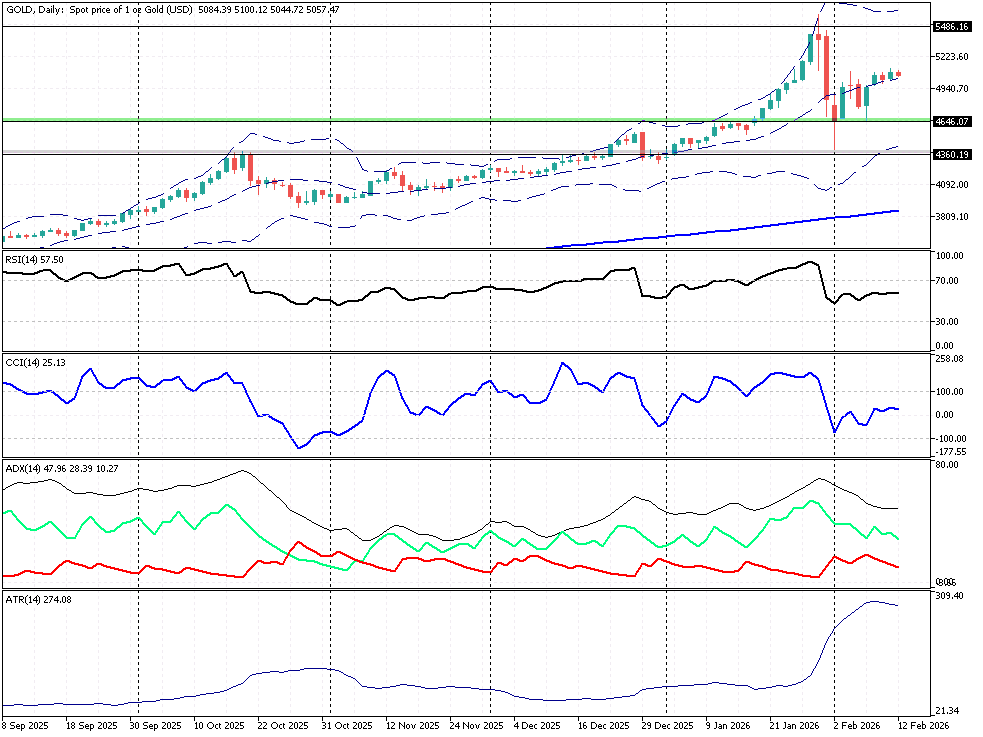 Złoto po środowym rajdzie do dwutygodniowego szczytu przeszło w fazę „kontrolowanej defensywy”, ale jak na razie brakuje tu przekonania niedźwiedzi. GOLD oscyluje w okolicach 5057-5060 USD, tracąc jedynie ok. 0,2% w ciągu dnia i cały czas pozostając blisko lokalnych maksimów. Silny raport NFP – 130 tys. nowych miejsc pracy wobec 70 tys. oczekiwanych i 48 tys. poprzednio, przy spadku bezrobocia do 4,3% i płacach +3,7% r/r – wyraźnie schłodził wyceny marcowej obniżki stóp Fed: rynek widzi teraz ok. 95% szans na brak ruchu w marcu (vs. 80% dzień wcześniej) i tylko dwie obniżki po 25 pb w 2026 r., z pierwszą w lipcu. Normalnie taki zwrot w oczekiwaniach byłby mocno negatywny dla złota, ale tym razem presję „odciąża” słaby dolar i obawy o niezależność Fed, więc korekta na kruszcu jest płytka. Technicznie wykres GOLD pokazuje klasyczną fazę konsolidacji po silnym wybiciu: cena utrzymuje się stabilnie nad rosnącą 200‑okresową średnią, która pełni rolę kluczowego, dynamicznego wsparcia. Z punktu widzenia zniesień Fibonacciego ostatni ruch spadkowy został już w połowie odrobiony – złoto handluje się pomiędzy 50% Fibo a 61,8%. Ten górny poziom wyznacza teraz główny opór: dopiero wybicie ponad 5145 USD otworzyłoby drogę do głębszego „odkręcania” wcześniejszej fali spadkowej. RSI na poziomie ok. 57 pkt. wskazuje na umiarkowaną przewagę byków, ale bez strefy wykupienia, co jest typowe dla bocznego, lekko wzrostowego układu. W praktyce oznacza to, że rynek złota przeszedł ze „szarpanego rajdu” w tryb wyczekiwania przed piątkowym odczytem CPI z USA: kupujący bronią pozytywnego biasu powyżej median line i 50% Fibo, a sprzedający czekają na mocniejszy impuls z danych, by ewentualnie zepchnąć notowania w stronę 4900–4800 USD. Dopóki GOLD pozostaje powyżej 4646 USD, scenariusz bazowy to dalsze kupowanie spadków i próby ataku na strefę 5145 - 5486 USD, przy świadomości, że każde kolejne „jastrzębie” zaskoczenie z Fed lub z rynku pracy może szybko przechylić szalę na korzyść głębszej korekty.