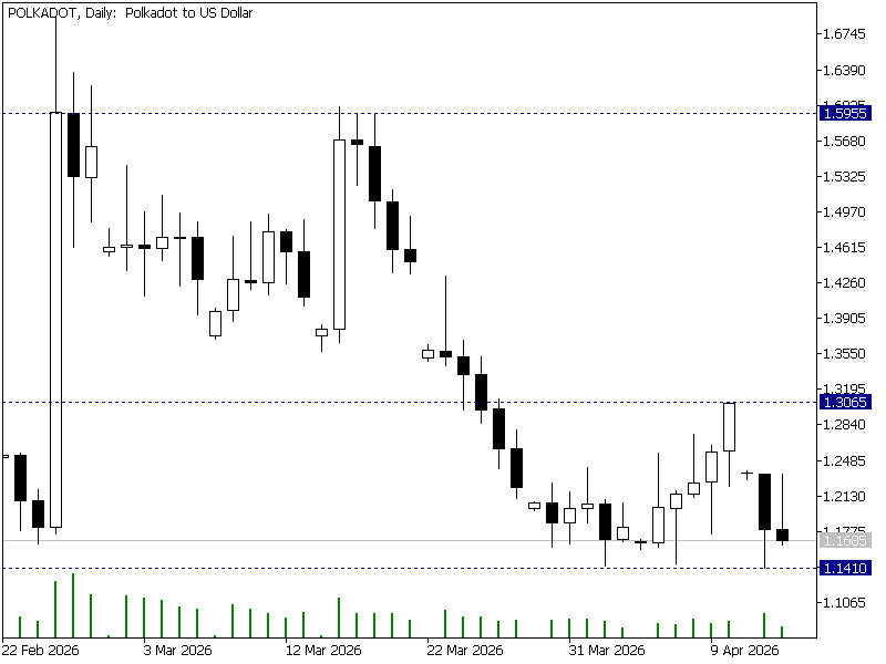 Obecnie notowania kontraktów na Polkadot kierują się w stronę kluczowego wsparcia w rejonie 1,1410, pozostając blisko historycznych minimów. Utrzymanie tego poziomu może sprzyjać stabilizacji notowań. Jego przełamanie otworzyłoby przestrzeń do pogłębienia spadków i wyznaczenia historycznych minimów.